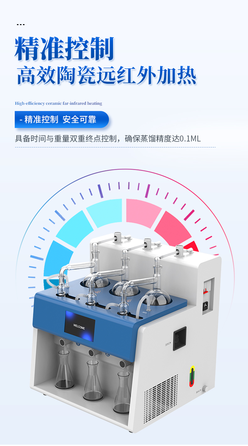 | 1.自動(dòng)化程度高:內(nèi)置冷卻水循環(huán)機(jī),實(shí)現(xiàn)全自動(dòng)化操作,提高實(shí)驗(yàn)效率與準(zhǔn)確性。 | 2.多通道獨(dú)立控制:3個(gè)加熱單元各自獨(dú)立,配備防倒吸、防過(guò)量蒸餾及防干燒保護(hù)。 | 3.智能觸控:7寸液晶觸摸屏,支持自定義保存*多1000種蒸餾方法,內(nèi)置18種國(guó)標(biāo)方法。 | 4.精準(zhǔn)控制:采用**陶瓷遠(yuǎn)紅外加熱,具備時(shí)間與重量雙重終點(diǎn)控制,確保蒸餾精度達(dá)0.1ml。 | 5.安全可靠:集成自動(dòng)清洗、自動(dòng)氣密檢查、反吹等功能,確保設(shè)備長(zhǎng)期穩(wěn)定運(yùn)行。 | 6.操作簡(jiǎn)便:一鍵啟動(dòng),支持遠(yuǎn)程OTA系統(tǒng)升級(jí),滿足不同用戶的使用需求。 |