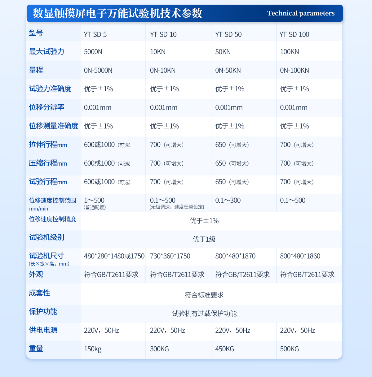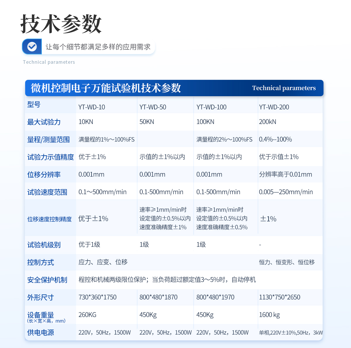 | (1)采用高精度、全數字調速系統及精密減速系統,驅動精密絲杠副進行試驗,實現試驗速度的大范圍調節,試驗過程噪音低、運行平穩。 | (2)可選用萬向節十字插銷結構,一方面便于試樣夾持,保證試驗同心度,另一方面很好的消除了不規則試樣對傳感器的影響。 | (3)Windows操作系統,人性化操作界面,可顯示試驗方法選擇界面、試驗參數選擇界面、試驗操作及結果顯示界面和曲線顯示界面,并可實時顯示各參數曲線,便于試驗數據分析,過程監控。 | (4)可實現試樣裝夾時橫梁快慢升降調整,具有過流、過壓、過載等保護裝置。 | (5)帶打印功能,可直接實現試驗過程的控制及數據的存儲、打印。 |