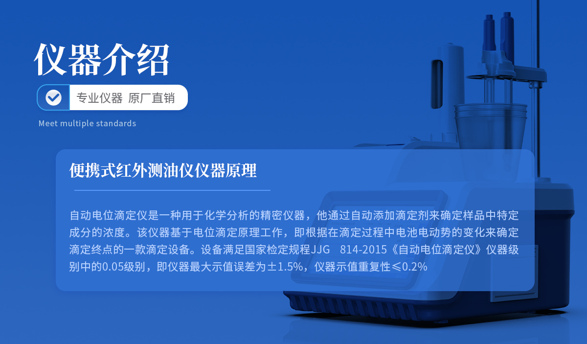 自動電位滴定儀是一種用于化學分析的精密儀器,他通過自動添加滴定劑來確定樣品中特定成分的濃度。該儀器基于電位滴定原理工作,即根據在滴定過程中電池電動勢的變化來確定滴定終點的一款滴定設備。設備滿足國家檢定規程JJG 814-2015《自動電位滴定儀》儀器級別中的0.05級別,即儀器**示值誤差為±1.5%,儀器示值重復性≤0.2%